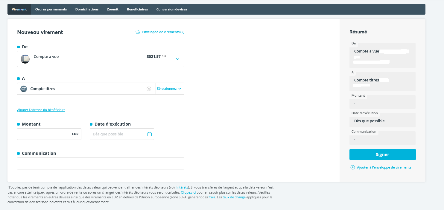 Il est possible de souscrire au nouveau bon d’État uniquement via notre site transactionnel. Il n’est pas possible de souscrire via notre app. Avant de commencer, assurez-vous d'avoir les liquidités nécessaires sur votre compte-titres. Vous pouvez pour cela effectuer un virement.